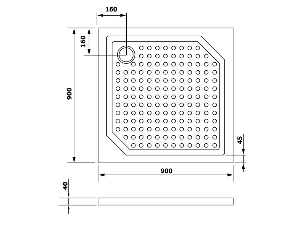 ANETA90 sprchová vanička z liateho mramoru, štvorec 90x90cm