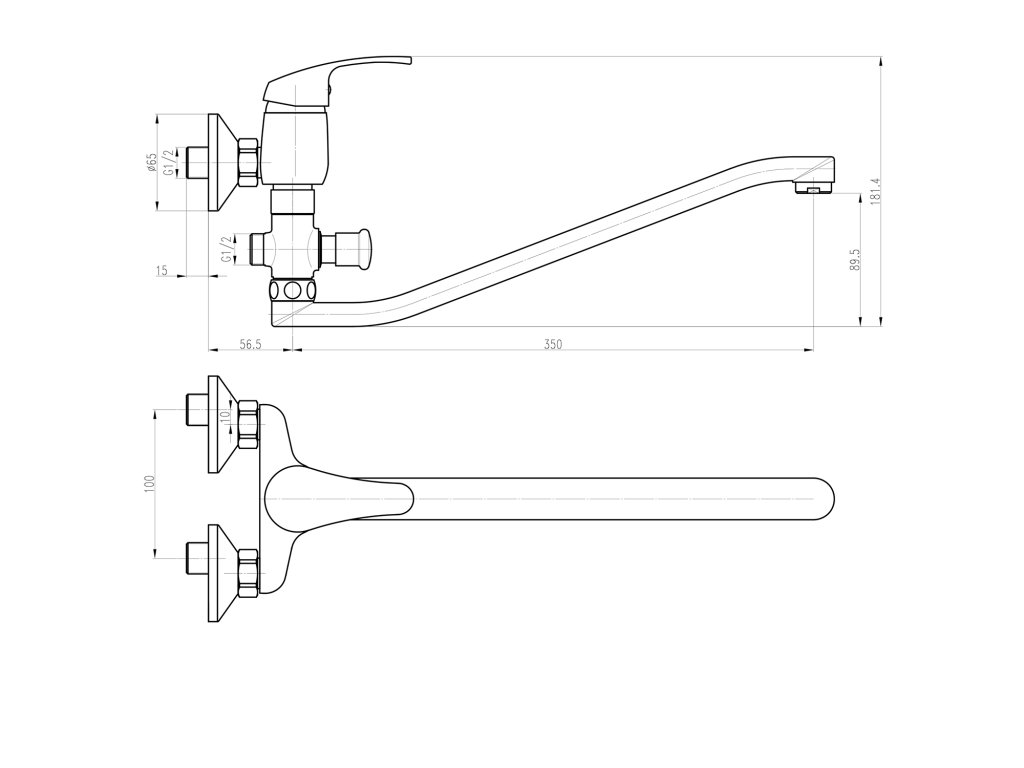 AQUALINE 35 nástenná umývadlová/vaňová batéria, rozteč 100mm, chróm S52140