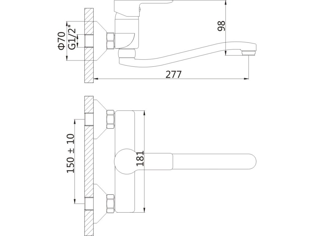BARON nástenná batéria, rozteč 150mm, chróm S612.015.1