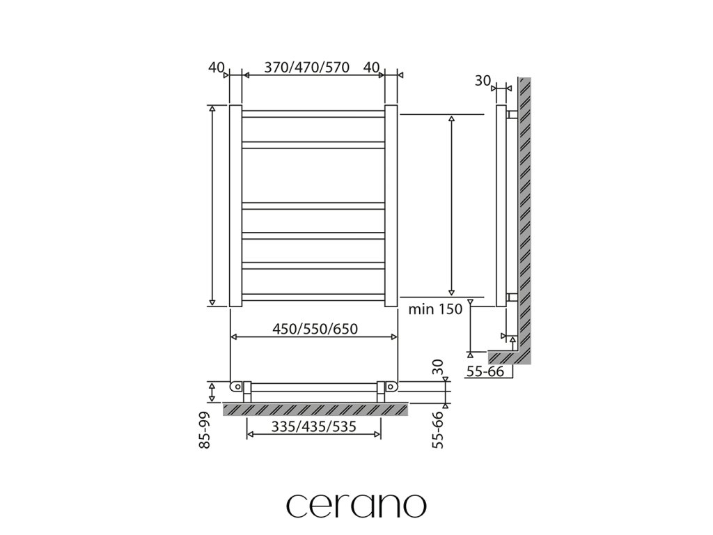 CERANO - Elektrický sušiak uterákov Domenico - 97 W - čierna matná - 660x550 mm