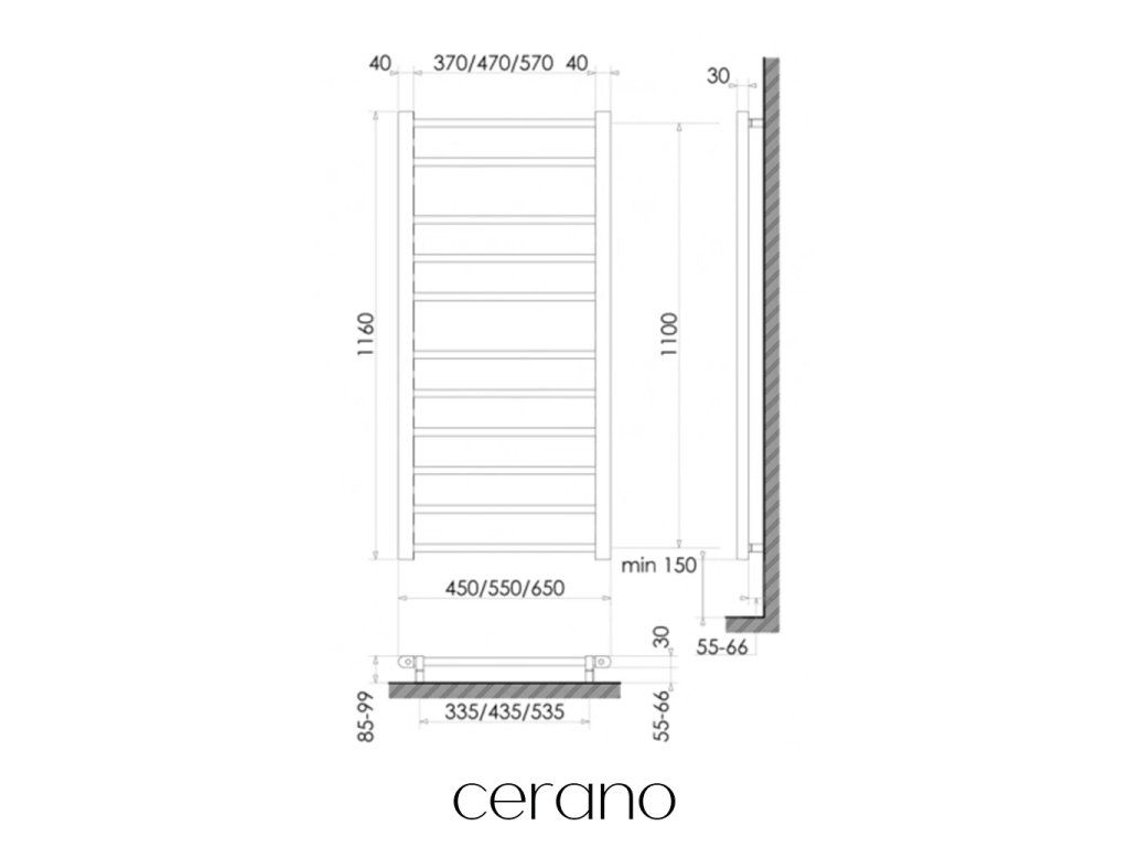 CERANO - Elektrický sušiak uterákov Luca - 187 W - čierna matná - 1160x550 mm
