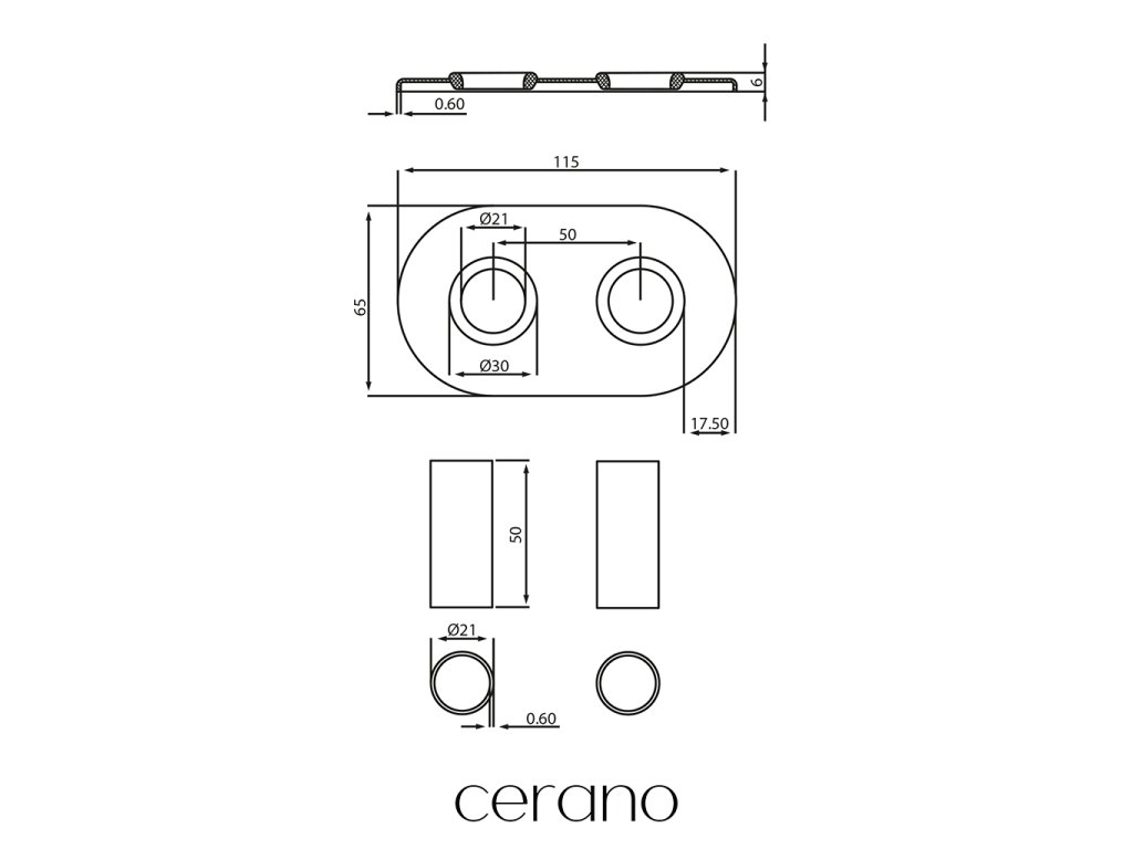 Set krycej dvojitej oválnej rozety s dvoma otvormi a objímkami na radiátor je sada, ktorá sa používa na zakrytie spojov medzi radiátorom a prívodným potrubím, čím zaisťuje estetický vzhľad a bezpečné upevnenie radiátora. Súprava pre dolné pripojenie, uhlový ľavý/pravý a rovný ľavý/pravý, s možnosťou použitia v konfigurácii s elektrickým vykurovacím telesom.
