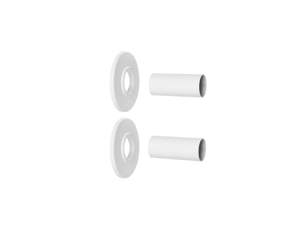 Sada roziet s tulejami je určená na zakrytie pripojenia. Spája sa s viacvrstvovými a medenými rúrkami. Rozety je možné namontovať vo vzdialenosti zodpovedajúcej radiátorovým pripojením, ale nie menej ako 100 mm. Maskovacie tuleje s dĺžkou 50 mm je možné použiť na pripojovacie rúrky s priemerom 16 mm - PEX a 15; 18 mm - meď. Špeciálny typ mosadze, z ktorej sú vyrobené tuleje, uľahčuje ich skracovanie na požadovanú dĺžku. Nerezová rozeta s farbou je dvojito chránená proti kondenzačnej korózii. Balené v blistri. Poznámka: Rozety je nutné namontovať pred pripojením radiátora na inštaláciu.