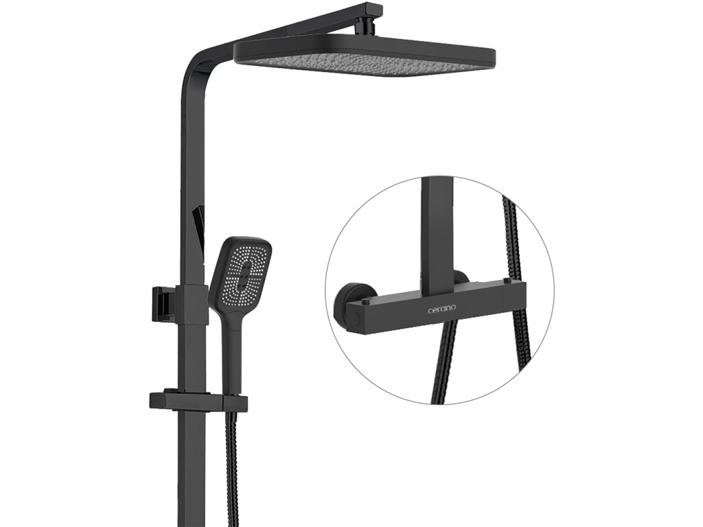 CERANO - Sprchový nástenný stĺp Octavia - termostatická sprchová batéria - čierna matná