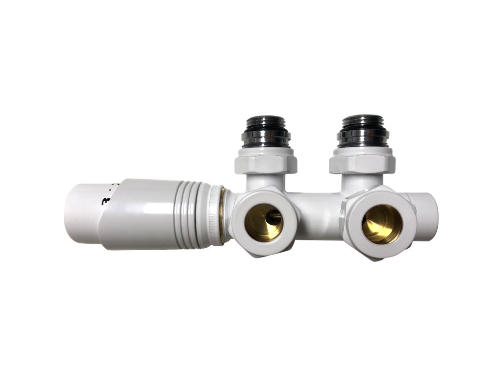 CERANO - Pripojovacia sada radiátorového ventilu s termostatickou hlavicou - stredové pripojenie 50mm - biela lesklá
