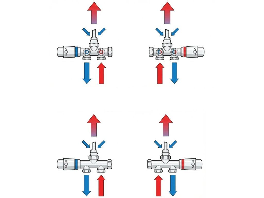 - uhlovom a rovnom prevedení pre pravú aj ľavú stranu (inštalácia hlavice na spiatočku)