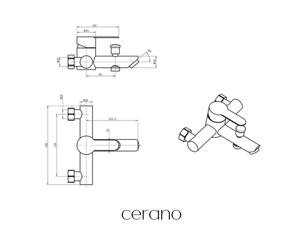 CERANO - Vaňová nástenná batéria Elvona - čierna matná