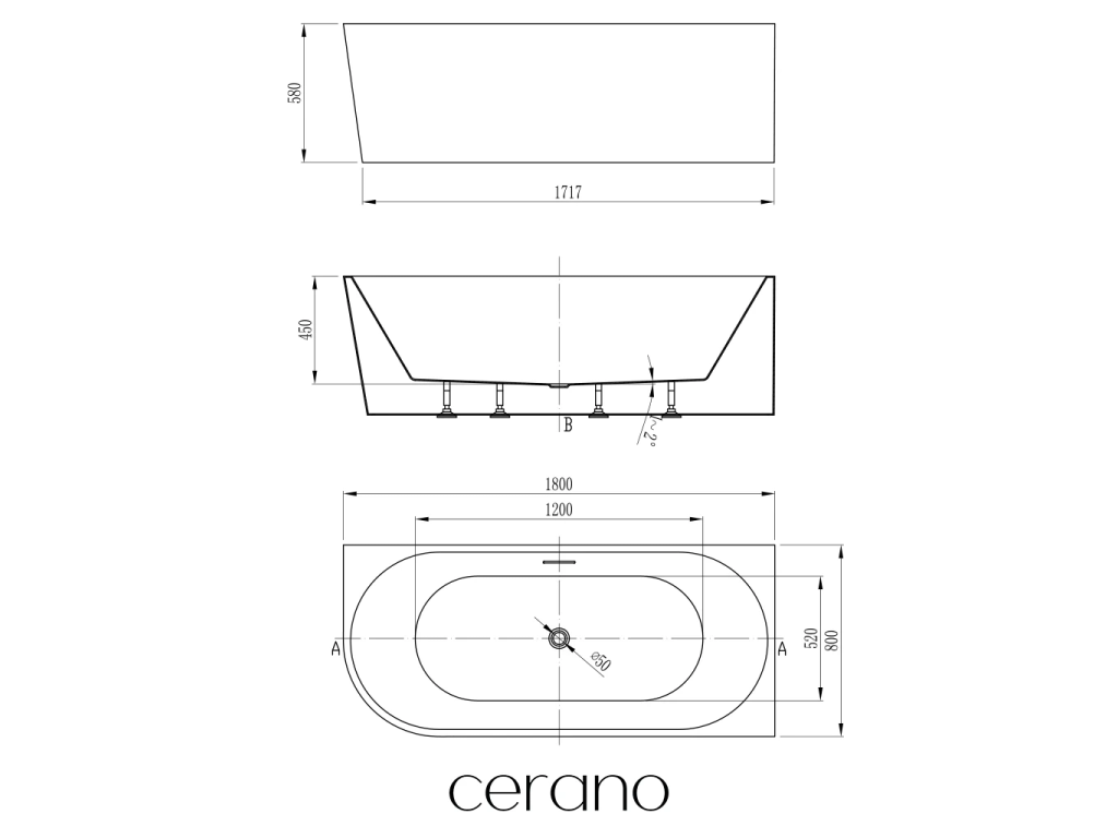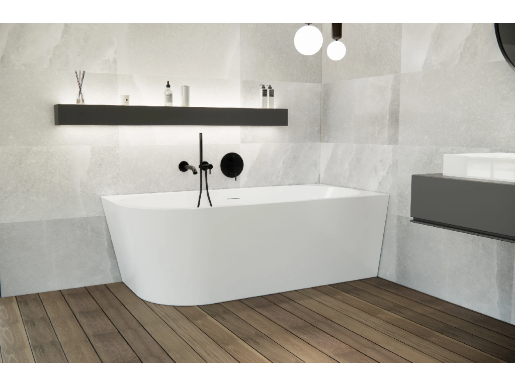 CERANO - Voľne stojaca akrylátová vaňa Bianco, pravá - biela lesklá - 180x80 cm