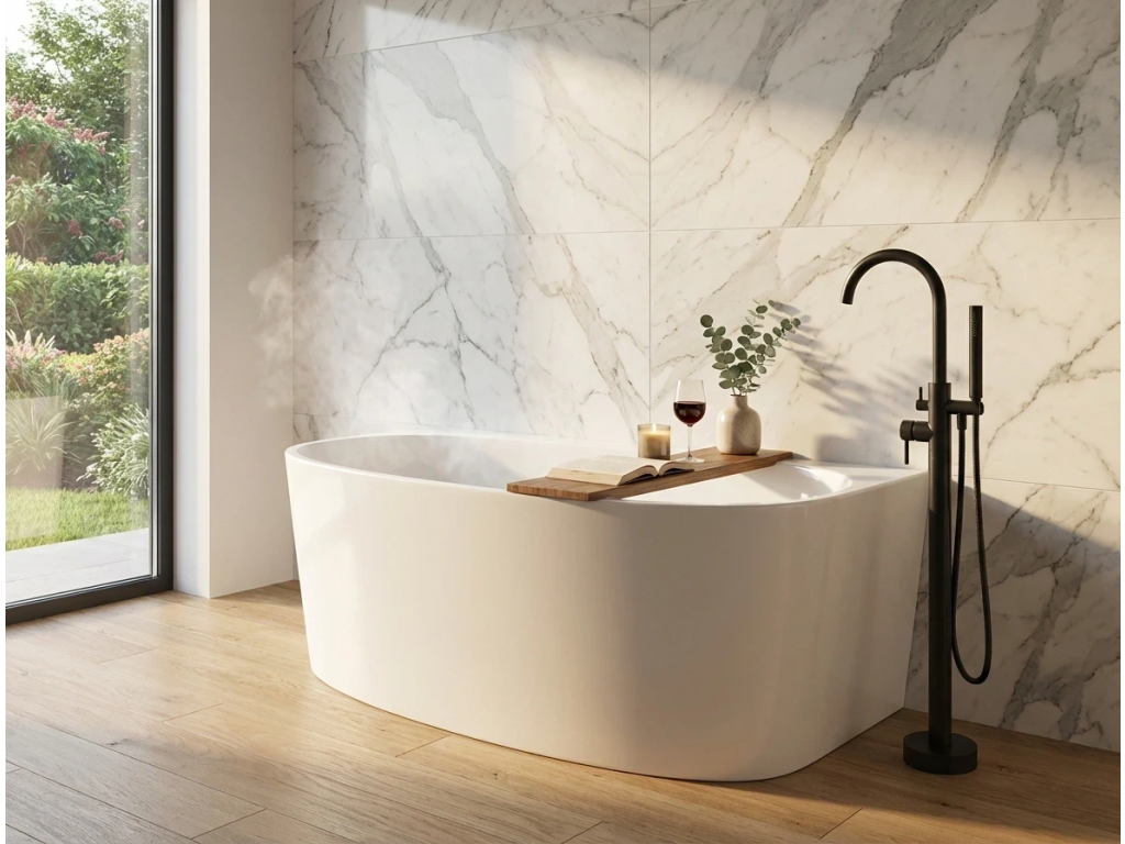 Sanitárny akrylát (PMMA) má prirodzene teplý povrch a výborne udržuje teplotu vody, takže voda vo vani chladne pomalšie ako u kovových vaní. Akrylátové vane sú výrazne ľahšie ako oceľové alebo liatinové. Materiál je úplne neporézny, odoláva usadzovaniu nečistôt, vodného kameňa a baktérií a je rezistentný voči bežným čistiacim prostriedkom. Drobné škrabance možno ľahko preleštiť.