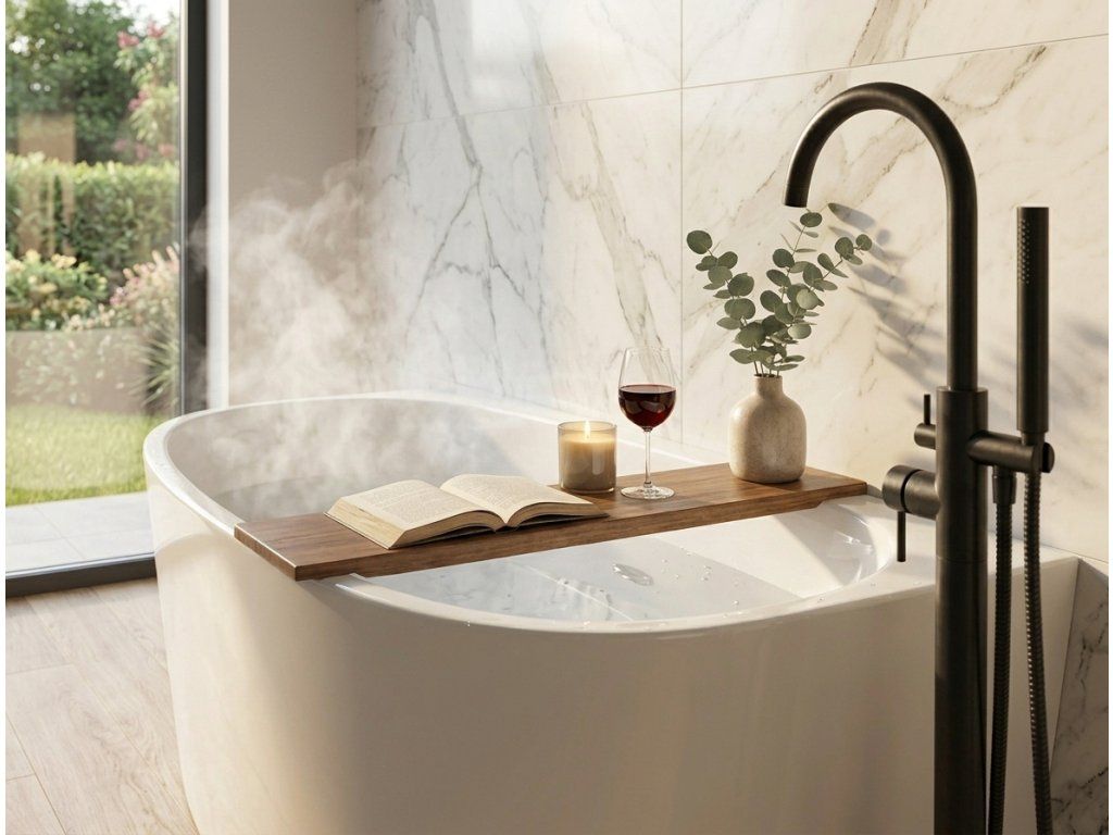 Sanitárny akrylát (PMMA) má prirodzene teplý povrch a výborne udržuje teplotu vody, takže voda vo vani chladne pomalšie ako u kovových vaní. Akrylátové vane sú výrazne ľahšie ako oceľové alebo liatinové. Materiál je úplne neporézny, odoláva usadzovaniu nečistôt, vodného kameňa a baktérií a je rezistentný voči bežným čistiacim prostriedkom. Drobné škrabance možno ľahko preleštiť.