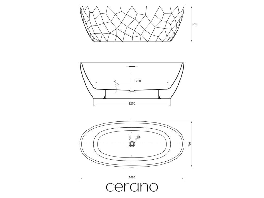 CERANO - Voľne stojaca akrylátová vaňa Malia - biela lesklá - 168x76 cm
