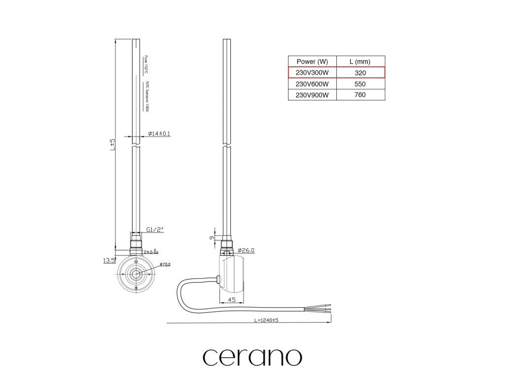 Elektrická vykurovacia tyč s designovým termostatom. Okrúhly dizajn vhodný pre všetky typy vykurovacích telies značky Cerano. Symetrické prevedenie umožňuje inštaláciu na ľavú aj pravú stranu vykurovacieho telesa. Ovládanie termostatu je možné vykonať aj vzdialene pomocou Wi-Fi pripojenia. Vďaka tomuto systému môžete riešiť nastavenie vykurovania aj bez vašej prítomnosti v domácnosti.