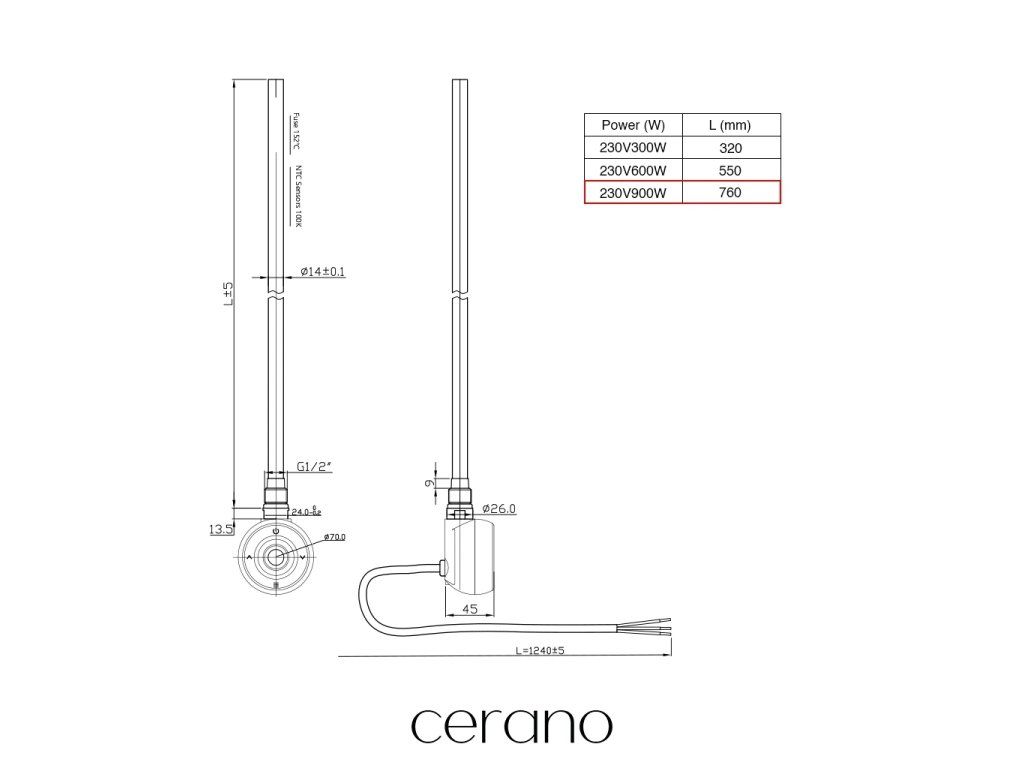 Elektrická vykurovacia tyč s designovým termostatom. Okrúhly dizajn vhodný pre všetky typy vykurovacích telies značky Cerano. Symetrické prevedenie umožňuje inštaláciu na ľavú aj pravú stranu vykurovacieho telesa. Ovládanie termostatu je možné vykonať aj vzdialene pomocou Wi-Fi pripojenia. Vďaka tomuto systému môžete riešiť nastavenie vykurovania aj bez vašej prítomnosti v domácnosti.