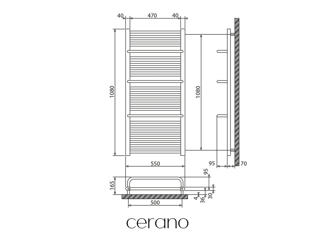 CERANO - Kúpeľňový radiátor Antonio - bočné pripojenie - 655W - čierna matná - 1180x550 mm