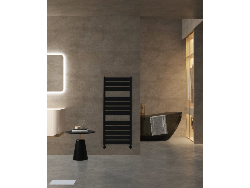 CERANO - Kúpeľňový radiátor Arturo - bočné pripojenie - 644W - čierna matná - 1200x500 mm