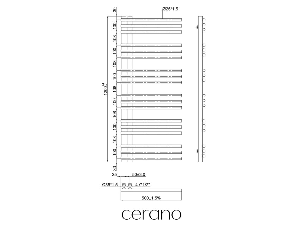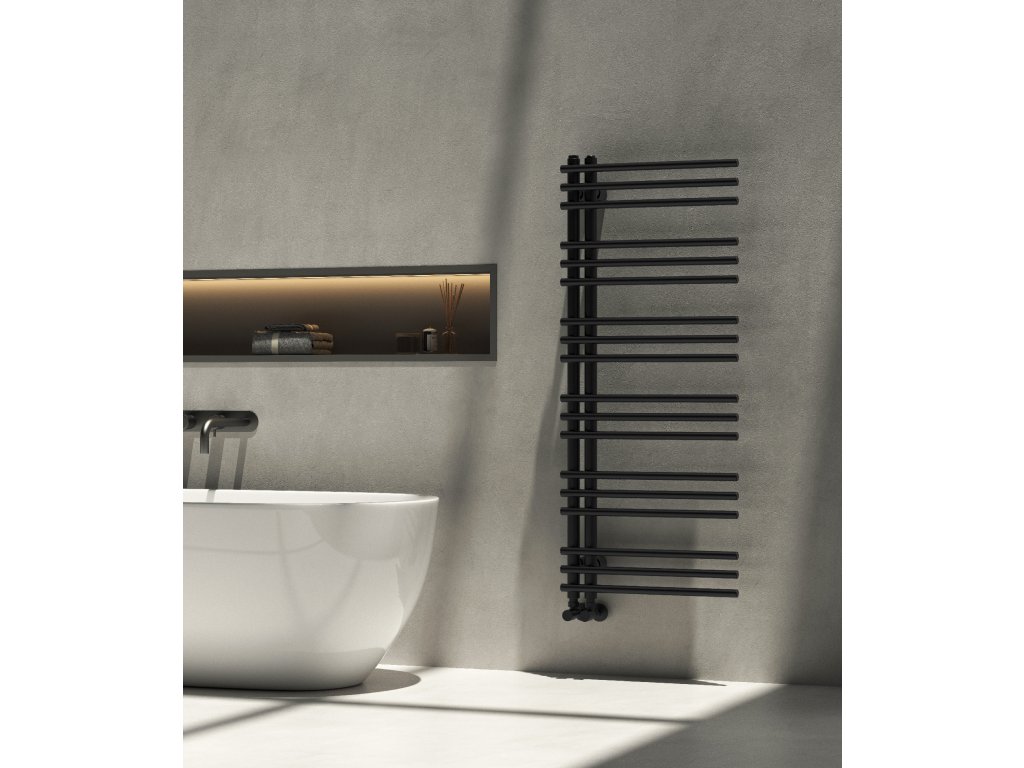 CERANO - Kúpeľňový radiátor Burke - L/P - asymetrické pripojenie 50mm - 562W - čierna matná - 1200x500 mm