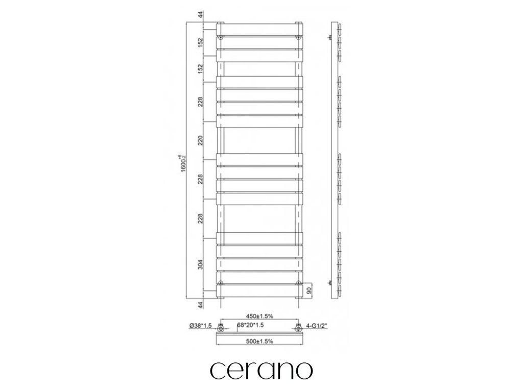 CERANO - Kúpeľňový radiátor Claude - bočné pripojenie - 866W - čierna matná - 1600x500 mm