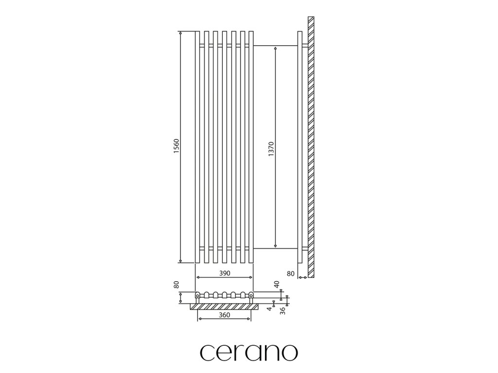 CERANO - Kúpeľňový radiátor Francesco - bočné pripojenie - 872W - čierna matná - 1500x390 mm