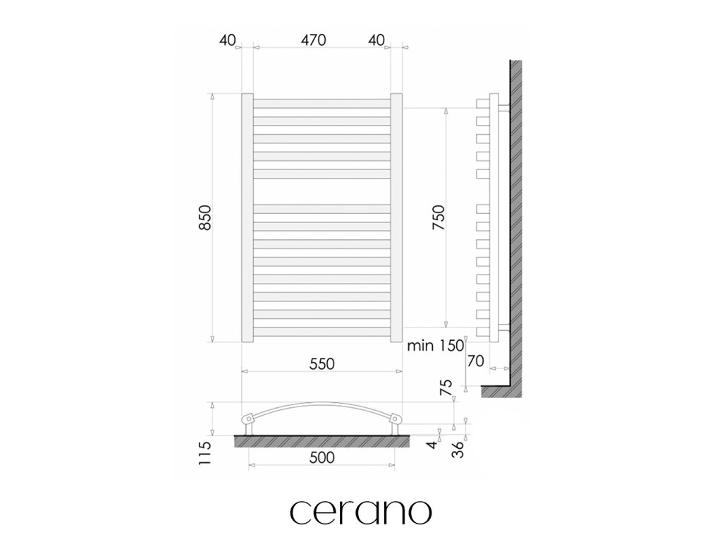 CERANO - Kúpeľňový radiátor Paolo - bočné pripojenie - 568W - čierna matná - 850x550 mm