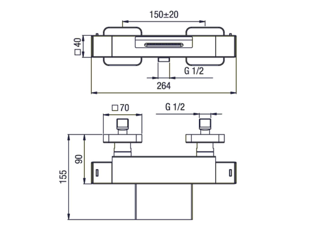 DIMY nástenná vaňová termostatická batéria, kaskáda, chróm,
