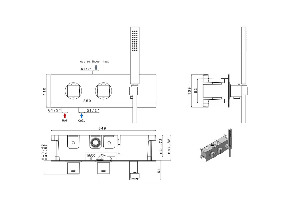 Kolekcia obsahuje všetky potrebné komponenty do kúpeľne. V ponuke je aj sprchový stĺp, ktorý má ultra štíhlu hlavovú sprchu. Séria DIMY je pre modernú kúpeľňu v hranatom štýle to pravé. V ponuke v chróme a matne čiernej.