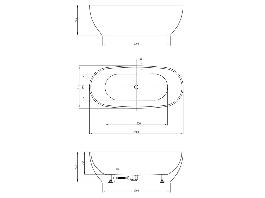 - Súčasťou vane je prepadová súprava, výpusť s click-clack zátkou a sifón