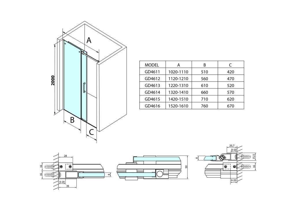 - Pri výrobe dverí je použité bezpečnostné sklo o hrúbke 8 mm s obojstrannou povrchovou úpravou COATED GLASS pre ľahkú údržbu.