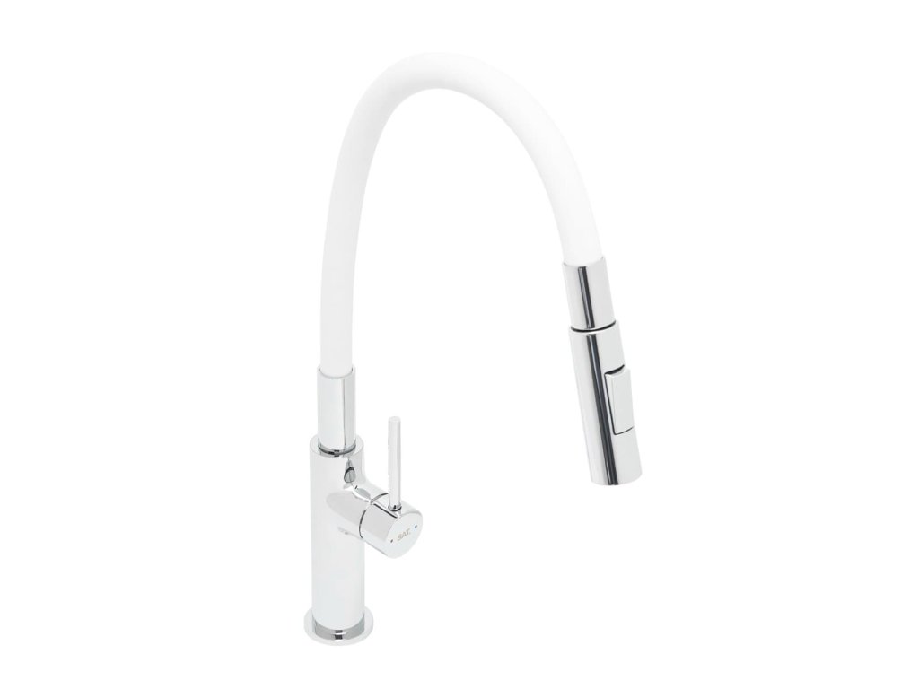 Páková stojanková drezová batéria so silikónovým ramienkom v prevedení biela a chróm.Dodatočné parametre