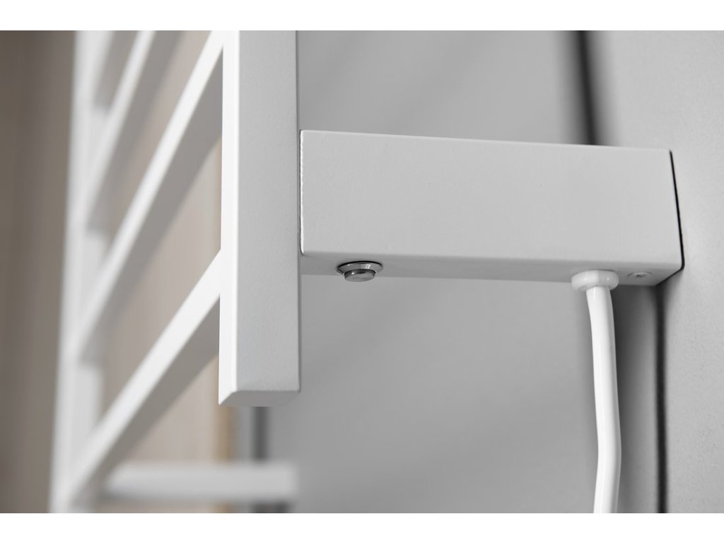 Vypínač je integrovaný v spodnej časti pravého vertikálneho profilu. Teleso je možné zapojiť priamo do elektrickej zásuvky vďaka krútenému káblu zakončenému vidlicou alebo môžete napájací kábel skryť a napojiť ho priamo zo steny do svorkovnice schovanej v konštrukcii telesa. Napájací krútený kábel (dĺžka 1,2 m) je vpravo dole a nemožno ho pozične meniť.