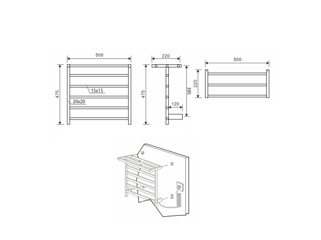 ELZOR Elektrický sušiak uterákov 500x470mm, 60W, biela matná