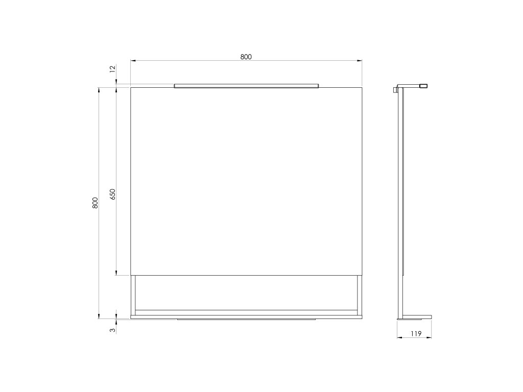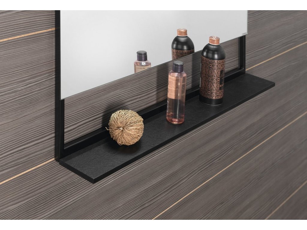 ERUPTA zrkadlo s poličkou a LED osvetlením 80x80x12cm, čierna matná