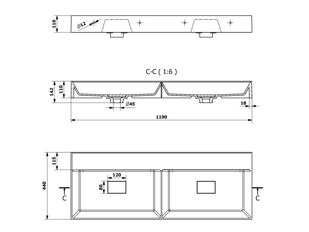 GODIVA dvojumývadlo 119x44cm, liaty mramor, bez otvoru pre batériu, biela