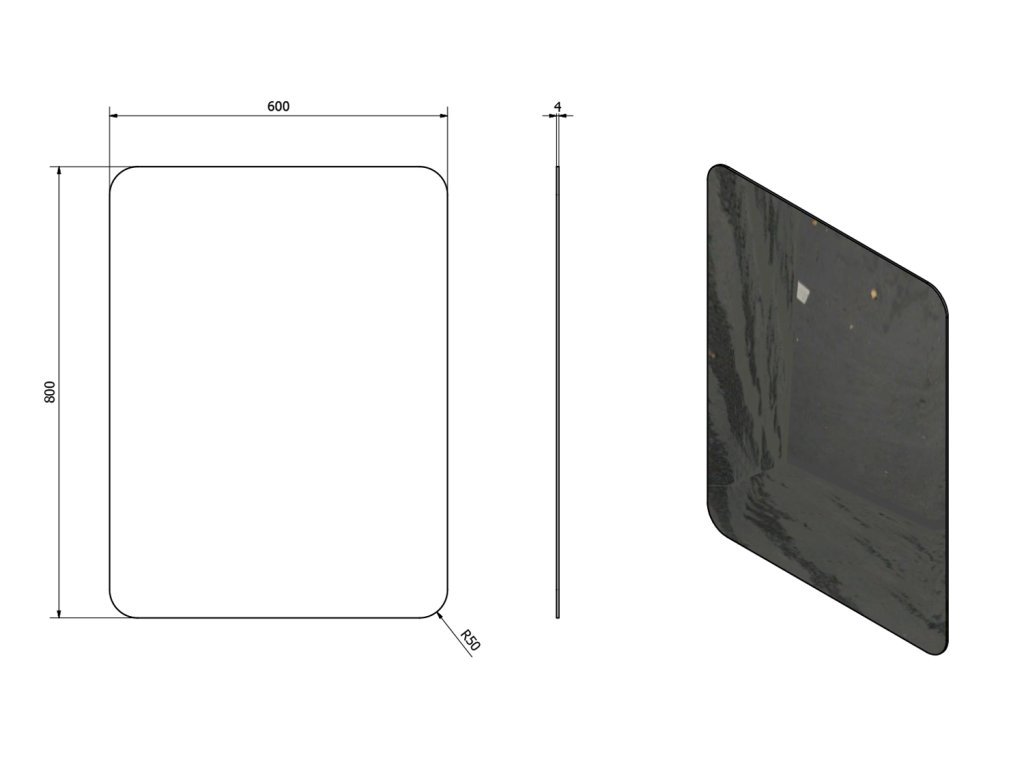 ISHAPE Zrkadlo 600x800mm, zaoblené rohy, bez uchytenia