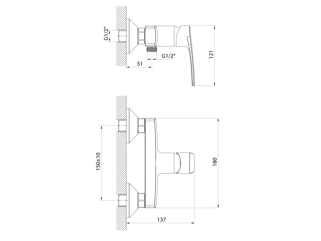 KORANA nástenná sprchová batéria, rozteč 150mm, chróm
