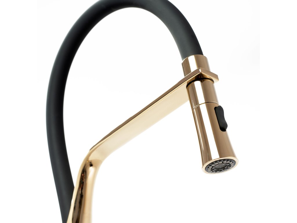 Základom každej kuchyne je vhodná kuchynská batéria. Táto batéria zo série Rea Castor je vyrobená z vysoko kvalitnej mosadze, vďaka čomu garantujeme odolnosť a výdrž batérie. Povrchová úprava v zlatej lesklej farbe robí batériu odolnú voči znečisteniu a viditeľným odtlačkom prstov a čierna farba dodáva batérii dokonalý a nevšedný vzhľad, ktorý bude skvele ladiť s dekorom vo vašej kuchyni. Garancia spoľahlivosti zaručuje tiež keramická kartuša. Vycvakávajúca hlava batérie umožňuje nasmerovať prúd vody presne tam, kam potrebujete. Na špičke hlavy je prepínač, ktorým môžete zvoliť štýl prúdu vody a to buď koncentrovaný/priamy prúd alebo rozptýlený/sprška.Dodatočné parametre