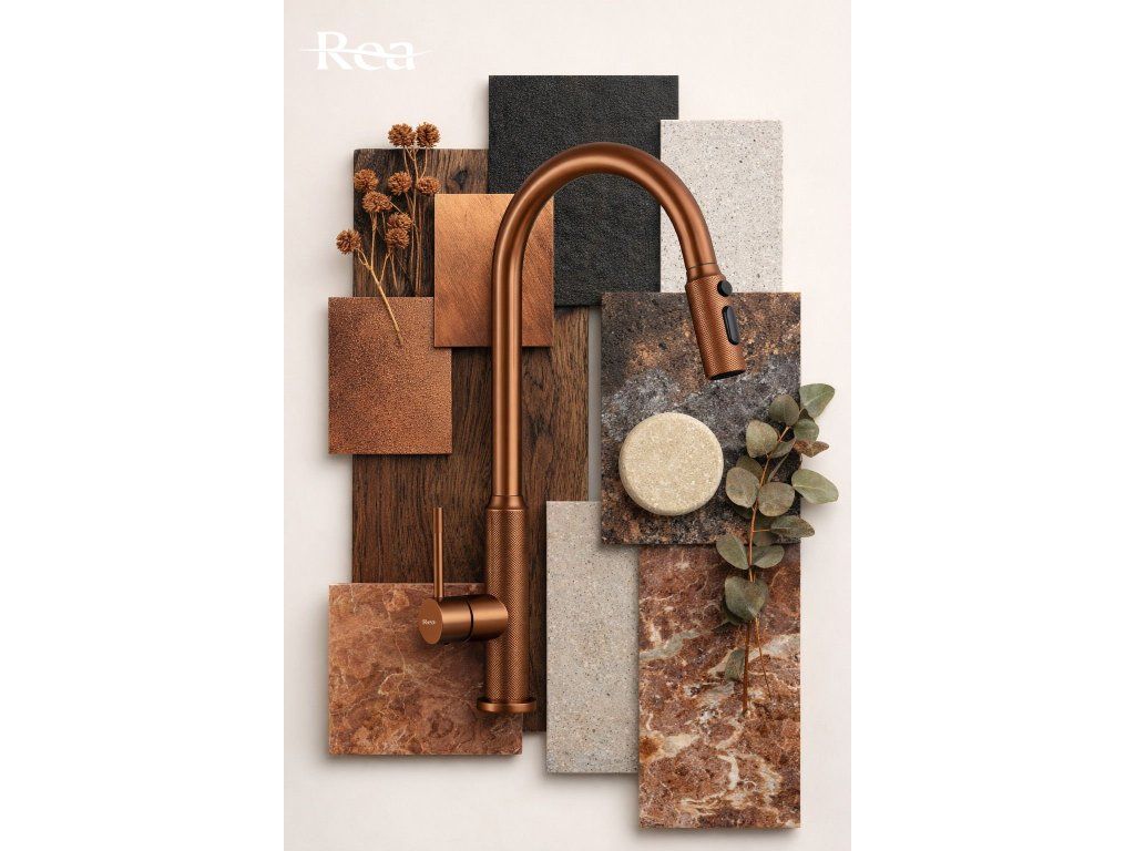 Kuchynská batéria Rea Master vo farbe brúsená meď spája industriálny dizajn s pokročilou technológiou a dodá Vašej kuchyni jedinečný charakter. Je vyrobená z masívnej mosadze a povrchovo upravená v teplom, matnom medenom odtieni, takže predstavuje odolné a mimoriadne estetické riešenie pre tých, ktorí hľadajú neštandardné prvky vybavenia.Povrch Brushed Copper – batéria je pokrytá úpravou v odtieni brúsená meď. Táto technológia zaisťuje vysokú odolnosť proti poškriabaniu a zmatneniu, pričom saténový, matný povrch účinne maskuje odtlačky prstov a uľahčuje údržbu.Výsuvná výpusť – pohyblivá výpusť na flexibilnej hadici je kľúčom k pohodliu pri kuchynských prácach. Umožňuje voľné umývanie veľkého riadu, oplachovanie komôr drezu aj presné napĺňanie vysokých nádob stojacich priamo na pracovnej doske.Zmena prúdu vody – ergonomický prepínač na výpusti umožňuje okamžitú zmenu režimu: z koncentrovaného súvislého prúdu na rozptýlený sprchový prúd, ideálny na šetrné oplachovanie zeleniny, ovocia alebo byliniek.Mosadzný korpus – konštrukcia z vysokokvalitnej mosadze zaručuje stabilitu, úplnú tesnosť a dlhú životnosť celej armatúry.Dekoratívne vrúbkovanie – charakteristickým detailom modelu Master je diamantová štruktúra na páke a na koncovke výpuste. Protišmyková úprava dodáva batérii surový, technický šmrnc a uľahčuje presnú reguláciu vody aj mokrou rukou.Batéria Rea Master Meď je ideálna do kuchýň v loftovom, industriálnom a modernom štýle. Jej teplá medená farebnosť a vysoká funkčnosť zjednodušujú každodenné povinnosti a zóne umývania dodávajú výrazný, profesionálny vzhľad.Dodatočné parametre