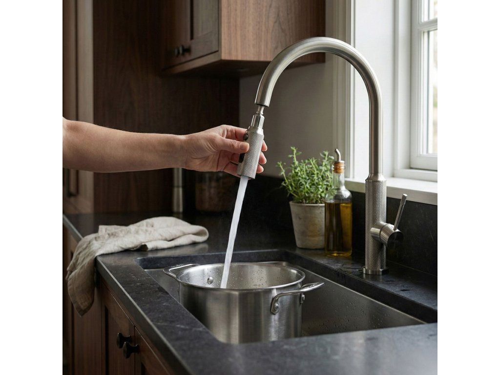 Doprajte svojej kuchyni funkčnosť a moderný štýl vďaka kuchynskej batérii Rea Master. Tento model spája industriálny dizajn s pokročilou technológiou. Je vyrobený z pevnej mosadze a upravený v odtieni brúseného niklu, čo z neho robí odolné a estetické riešenie pre náročných používateľov.Povrch Brushed Nickel – batéria je pokrytá PVD vrstvou v farbe brúseného niklu. Táto technológia zaisťuje vysokú odolnosť voči poškriabaniu a zmatneniu a saténový povrch uľahčuje čistenie.Výsuvná výtoková hubica – pohyblivá hubica na flexibilnej hadici je kľúčom k pohodliu v kuchyni. Umožňuje jednoduché umývanie veľkých nádob, oplachovanie drezu či napúšťanie vysokých hrncov na pracovnej doske.Prepínanie prúdu vody – ergonomický prepínač na hubici umožňuje okamžitú zmenu režimu: z koncentrovaného súvislého prúdu na rozptýlený sprchový prúd, ideálny na oplachovanie ovocia a zeleniny.Mosadzný korpus – konštrukcia z kvalitnej mosadze zaručuje stabilitu, tesnosť a dlhú životnosť armatúry.Dekoratívne vrúbkovanie – typickým prvkom modelu Master je diamantová štruktúra na páke a koncovke hubice. Protišmyková úprava dodáva technický vzhľad a uľahčuje ovládanie mokrou rukou.Batéria Rea Master Nickel je skvelou voľbou do moderných a loftových kuchýň. Jej surové, „oceľové“ sfarbenie a vysoká funkčnosť zjednodušujú každodenné činnosti a dodávajú zóne umývania profesionálny vzhľad.Dodatočné parametre