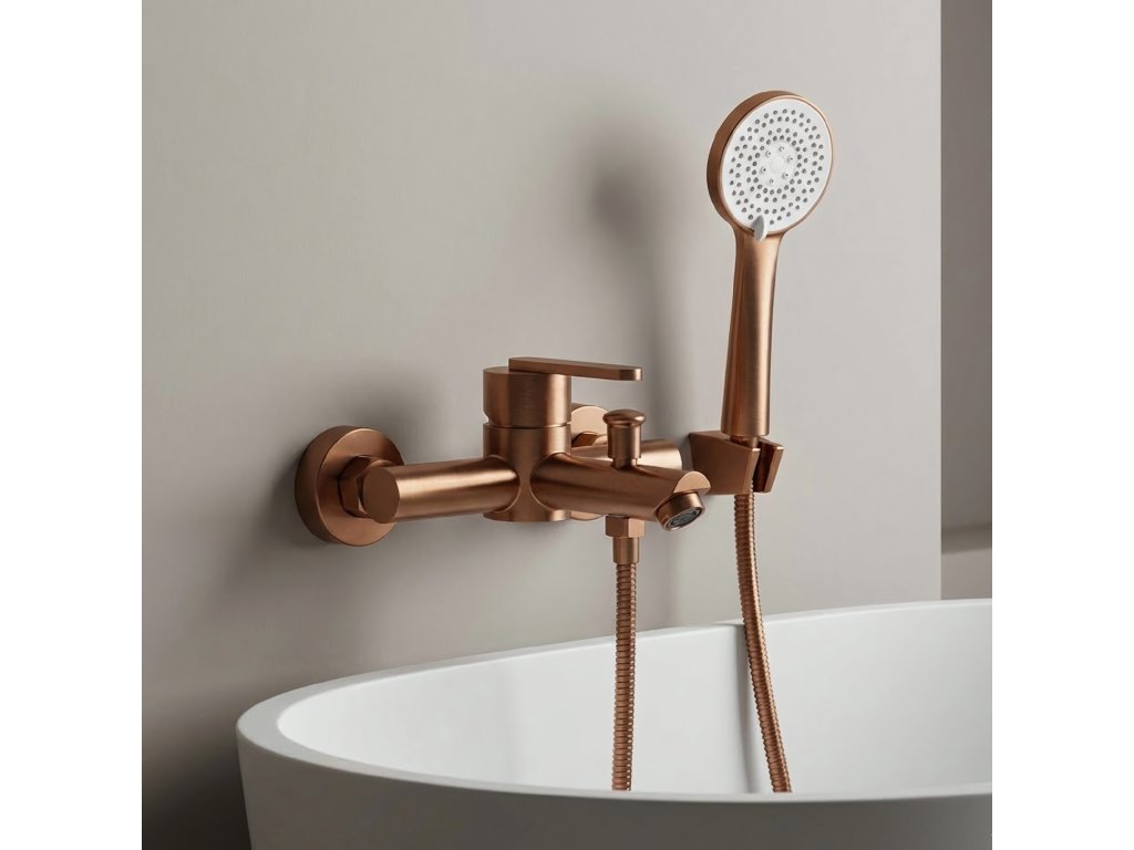 Doplňte aranžmán svojej kúpeľne o elegantnú a funkčnú vaňovú batériu Rea Ontario. Tento nástenný model v trendy farbe Kartáčovaná meď vyniká modernou valcovou formou, ktorá skvelo zapadne do súčasných interiérov. Súčasťou balenia je aj farebne zladená sprchová ručica.Nástenná montáž – klasická dvojotvorová inštalácia zaisťuje stabilitu a estetický vzhľad kúpacej zóny.Farba Kartáčovaná meď – teplé vyhotovenie, ktoré dodá interiéru moderný charakter a ľahko sa udržiava.Ručica z ABS – ľahká, praktická a odolná sprchová hlavica, ktorá zaručuje komfort používania.Perlátor výtoku – integrovaný perlátor prevzdušňuje prúd vody, čo podporuje úsporu a jemnosť prúdu.Prepínač funkcií – ergonomický prepínač umožňuje rýchlu a pohodlnú zmenu medzi výtokom a sprchou.Keramická kartuša – zabezpečuje plynulú reguláciu prietoku a teploty vody a dlhú životnosť.Vaňová batéria Rea Ontario je skvelou voľbou pre tých, ktorí ocenia pevné spracovanie a minimalistický dizajn. Kombinácia medeného finišu s praktickou ABS ručicou vytvára odolný a efektový set do každej modernej kúpeľne.
