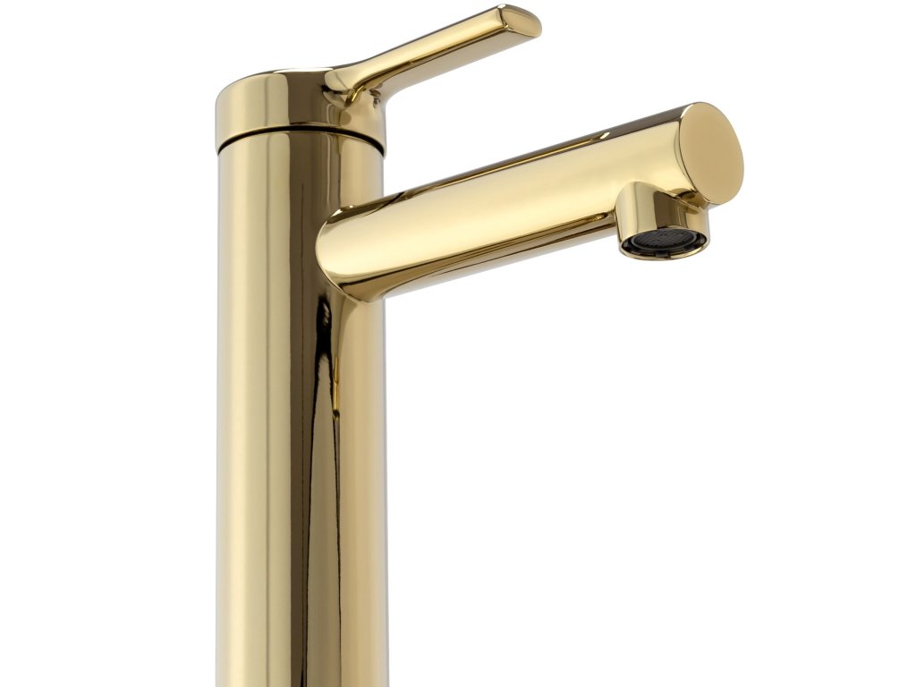 Predstavujeme Vám krásnu, mimoriadne funkčnú a modernú vodovodnú batériu. Ide o produkt, ktorý dokonale vyplní priestor vašej kúpeľne pri zachovaní dokonalého vzhľadu a estetiky interiéru. Batéria je určená na montáž na dosku vedľa umývadla. Je vyrobený z mosadze pokrytej zlatým povrchom. Vďaka špeciálnej výrobnej fáze je odolná a ľahko sa udržiava v čistote.