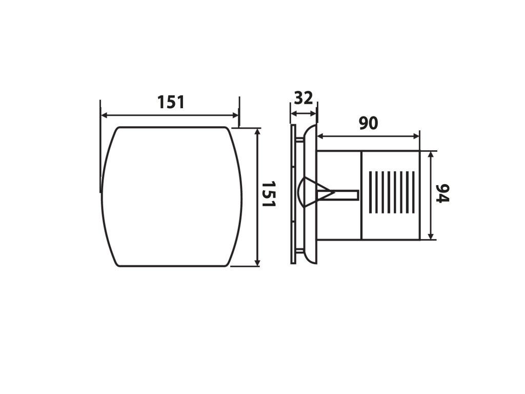 Kúpeľňový axiálny ventilátor s výbavou STANDARD