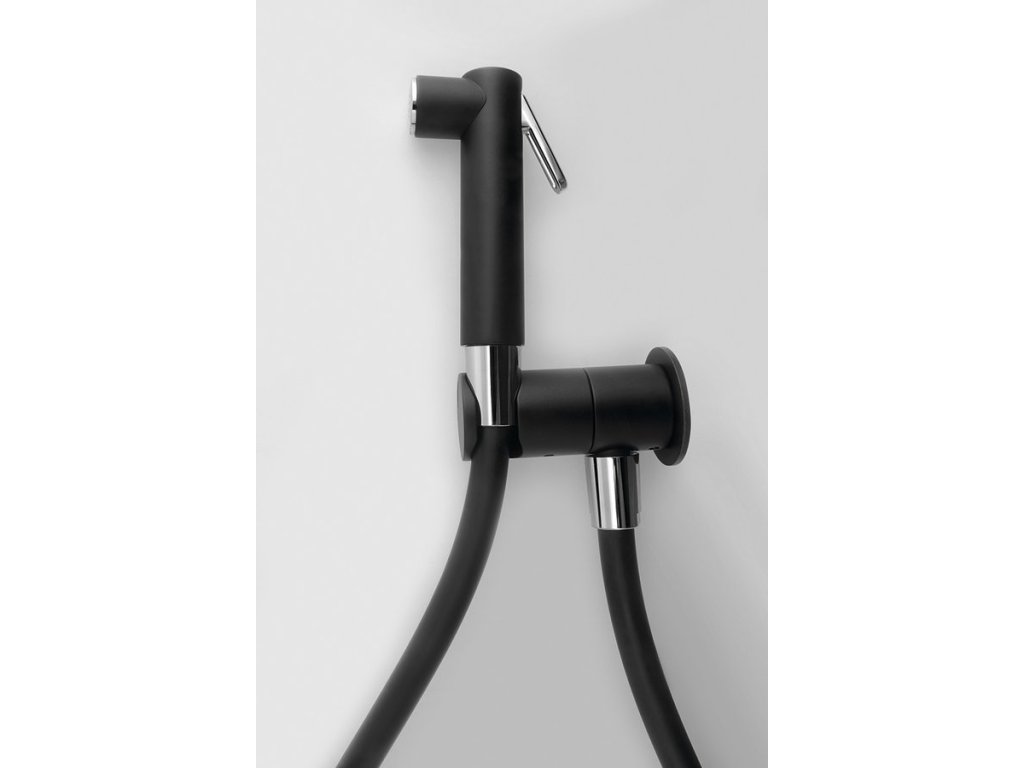 Nástenný ventil s ručnou bidetovou sprškou a bezpečnostnou poistkou, guľatý, čierna matná