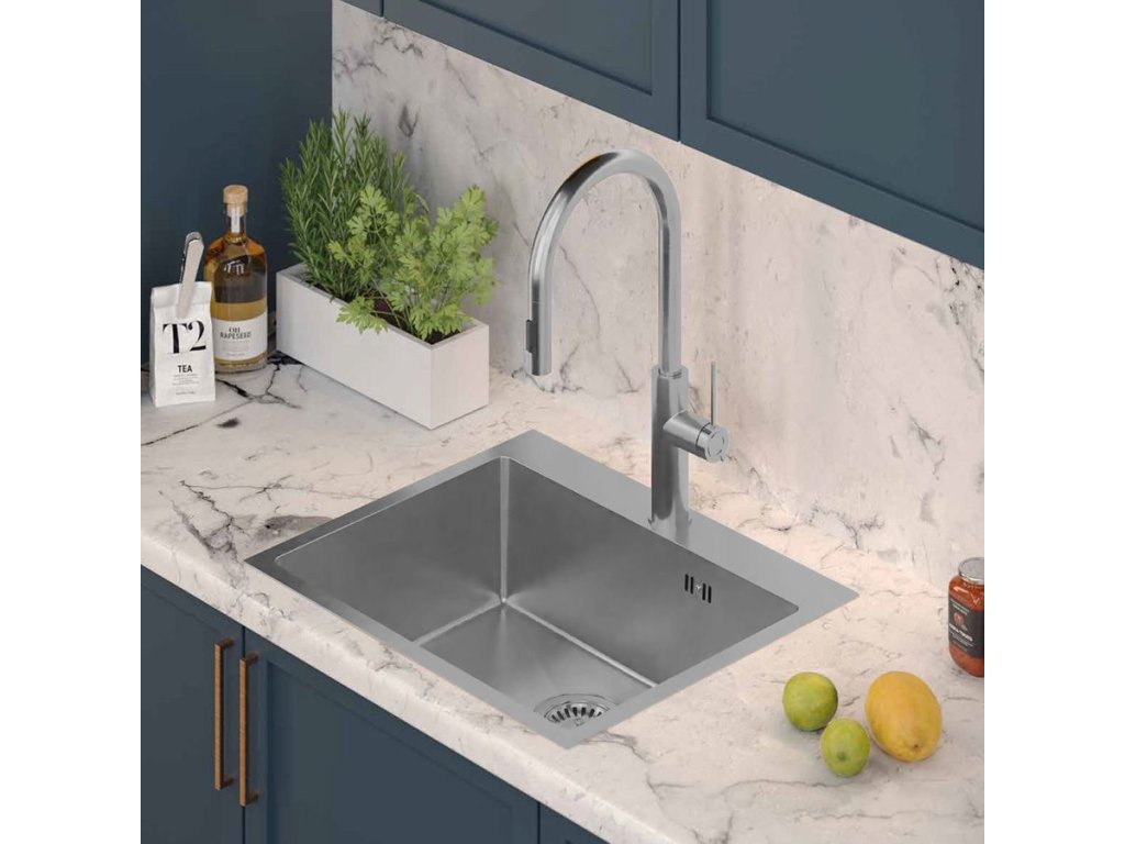 Drez Russel 110 je veľmi priestranný, jednomiskový drez vyrobený z nerezovej ocele hrúbky 1 mm. Vďaka svojmu minimalistickému a modernému vzhľadu sa hodí do každého dizajnu kuchyne. Výrobok má odtieňovo zladený odtok, vďaka čomu celok pôsobí veľmi ucelene a elegantne. Sifón, ktorý sa dodáva s umývadlom, je veľmi praktický, priestorovo úsporný model. Vďaka usporiadaniu odtokových rúrok získate v skrinke pod drezom ďalší priestor na odkladanie obalov saponátu alebo nádob na odpad. Hygienický materiál a ľahko čistiteľné hladké povrchy zaisťujú, že drez si zachováva pôvodný vzhľad a bráni rastu mikroorganizmov. Odstránením hrán, ktoré vyčnievajú nad pracovnú dosku, sa vyhneme nevzhľadnému a nehygienickému hromadeniu zvyškov jedla alebo nečistôt na nich.Dodatočné parametre