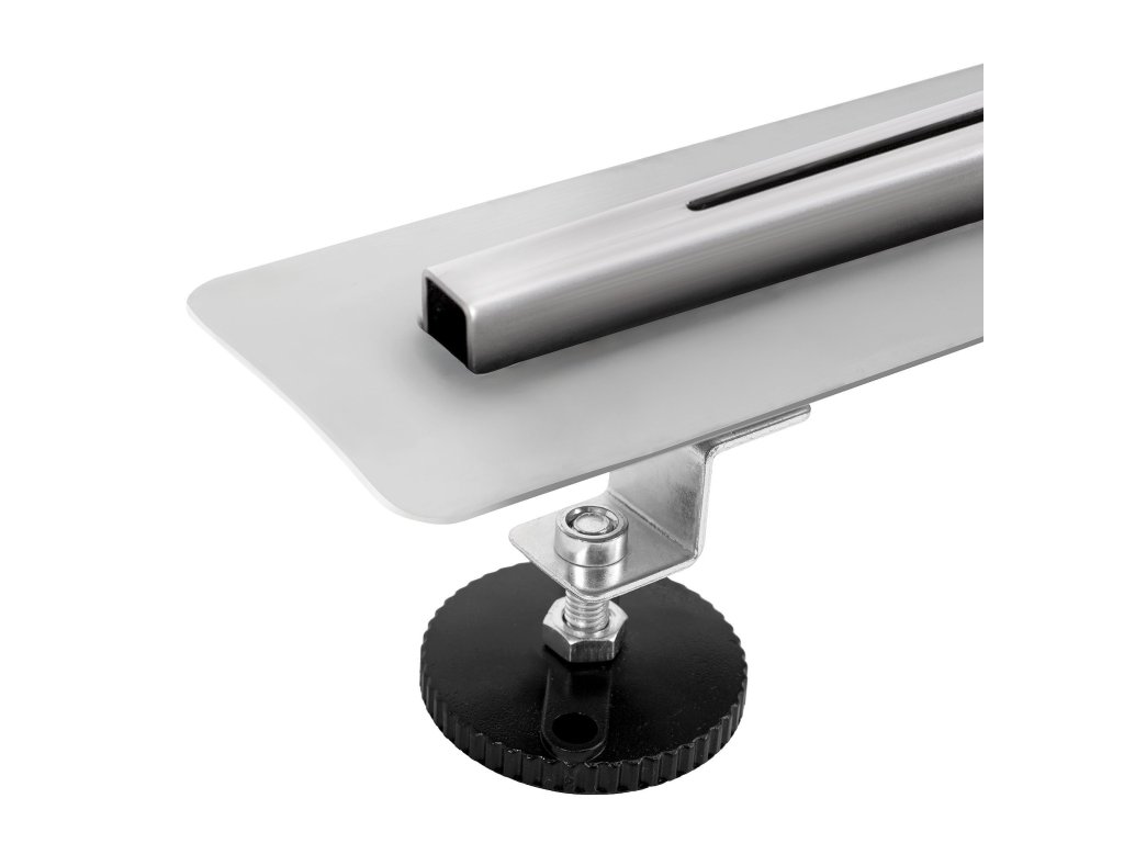 Odtokový žľab je celý vyrobený z kyselinovzdornej nerezovej ocele Aisi 304. Je vybavený radom inovatívnych technológií, ktoré uľahčujú montáž a každodenné používanie. V odtoku je použitý dvojitý filtračný systém, ktorý dokonale zabraňuje vnikaniu nečistôt a predmetov, ktoré môžu blokovať odtok vody do kanalizácie. Výhodou tohto systému je ľahké čistenie. Sada obsahuje: nohy, sifón, Dry-Fix manžetu, košík, užívateľskú príručku a háčik na výmenu krytu žľabu.