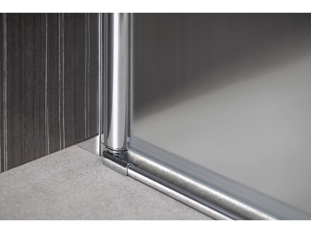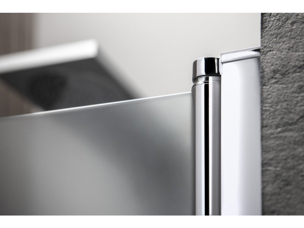 Ekonomická séria sprchových zásten bez funkčných kompromisov s chrómovými profilmi. Výplň je tvorená bezpečnostným matným sklom.