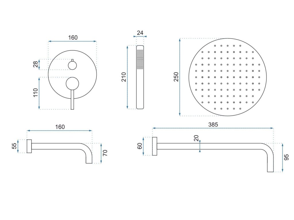 | Zahrnuté: | skrytá batéria, sprchový dážď, dažďové sprchové rameno, hadica 1500 mm, slúchadlo, držiak ručnej sprchy, mriežky, box |