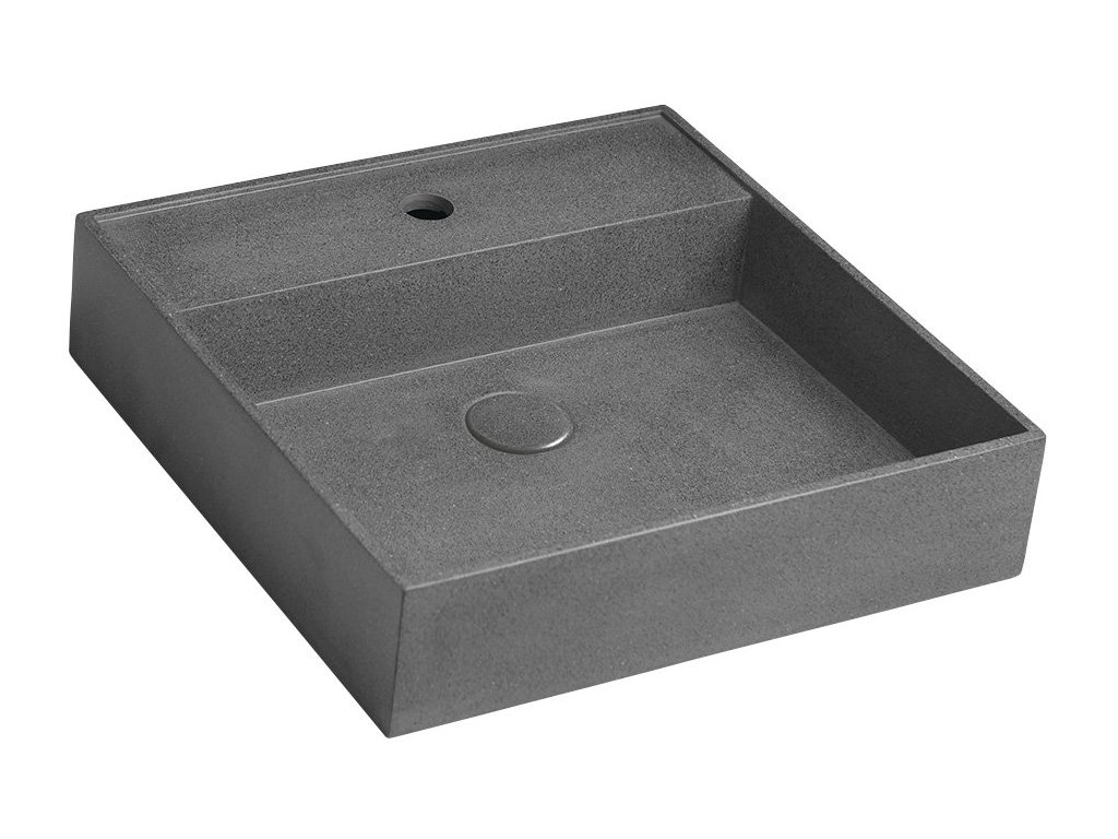 QUADRADO betónové umývadlo na dosku vrátane výpuste, 46x46cm, čierny granit