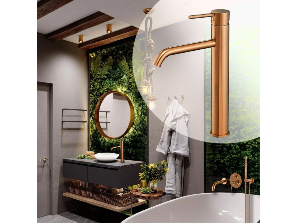 Mimoriadne odolná a funkčná umývadlová batéria vyrobená z mosadze najvyššej kvality. Tento materiál zaručuje úplnú spoľahlivosť a bezporuchovú prevádzku výrobku počas mnohých rokov. Keramická hlava umožňuje až 500 000 cyklov otvorenia a zatvorenia vodného prúdu. Pokrytie tela batérie ružovozlatou vrstvou dodáva batérii jedinečný vzhľad a zároveň ju chráni pred koróziou a zmatnením. Krásny tvar batérie dokonale zapadne do interiéru každej kúpeľne.Dodatočné parametre