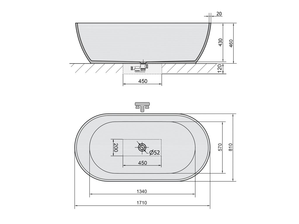 REDUTA voľne stojaca vaňa liaty mramor 171x81x46cm, biela