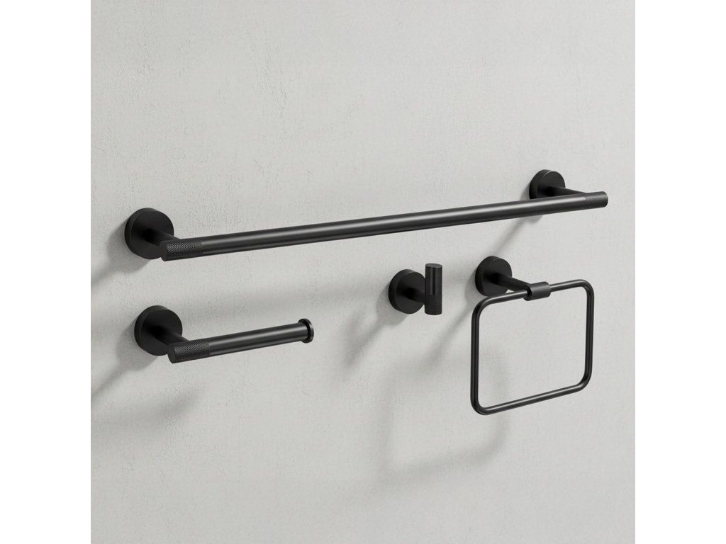 Sada kúpeľňových doplnkov Grid je elegantné a funkčné riešenie, ktoré sa dokonale hodí do každej modernej kúpeľne. Súčasťou sady je držiak na veľký uterák, držiak na toaletný papier, háčik a kruh na uterák, čím vytvára jednotný a štýlový celok na každodenné použitie. Všetky prvky sú vyrobené z odolného kovu, ktorý je odolný voči vlhkosti a korózii, vďaka čomu si dlhodobo zachovávajú estetický vzhľad. Doplnky sa montujú priskrutkovaním, čo zaručuje stabilitu, pevné uchytenie a dlhú životnosť aj pri intenzívnom používaní. Kúpeľňová sada Grid spája minimalistický dizajn s vysokou kvalitou spracovania. Jednoduchý geometrický tvar a dekoratívne ryhovanie sa dokonale hodia do klasických aj moderných interiérov. Je to ideálna voľba pre tých, ktorí oceňujú poriadok, funkčnosť a nadčasový štýl.Dodatočné parametre