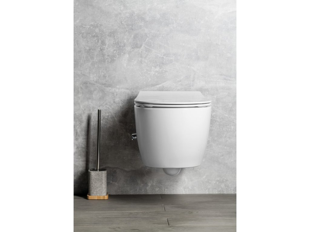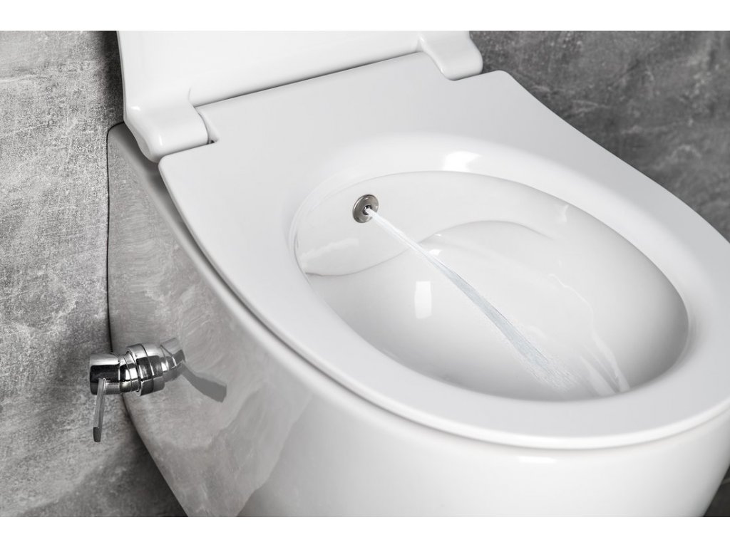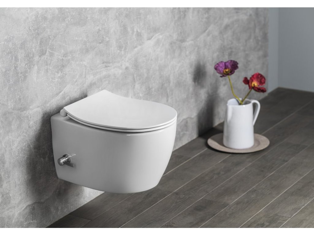 SENTIMENTI závesná WC misa Rimless, integrovaný ventil a bidetová spŕška 36x51 cm, biela